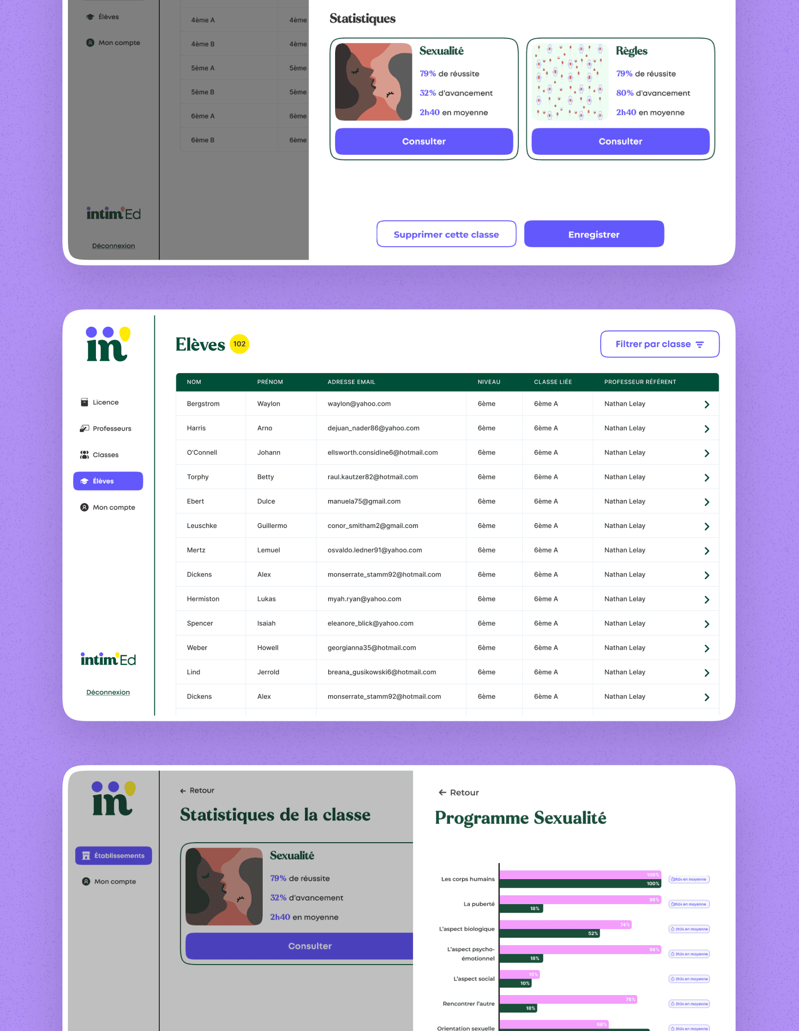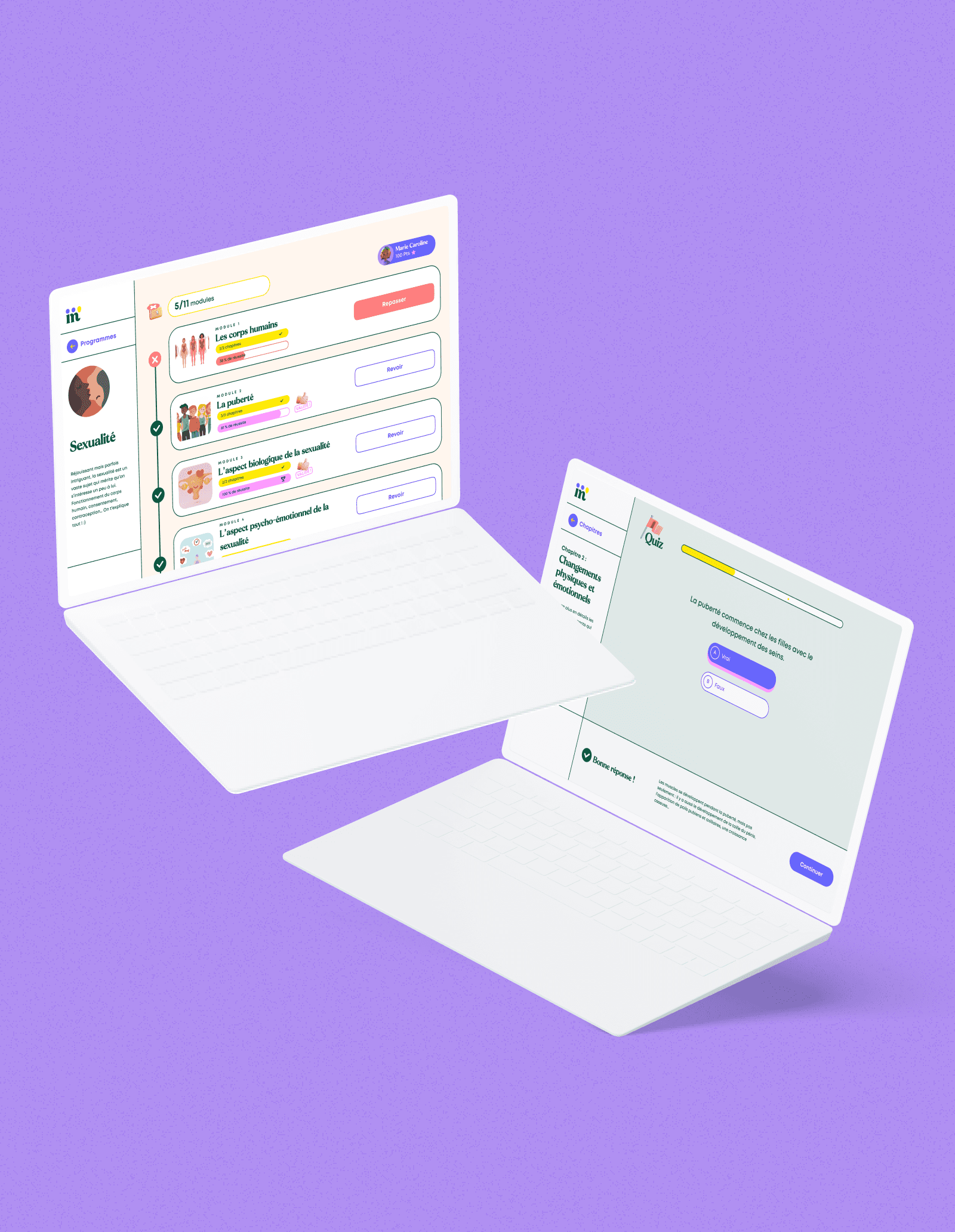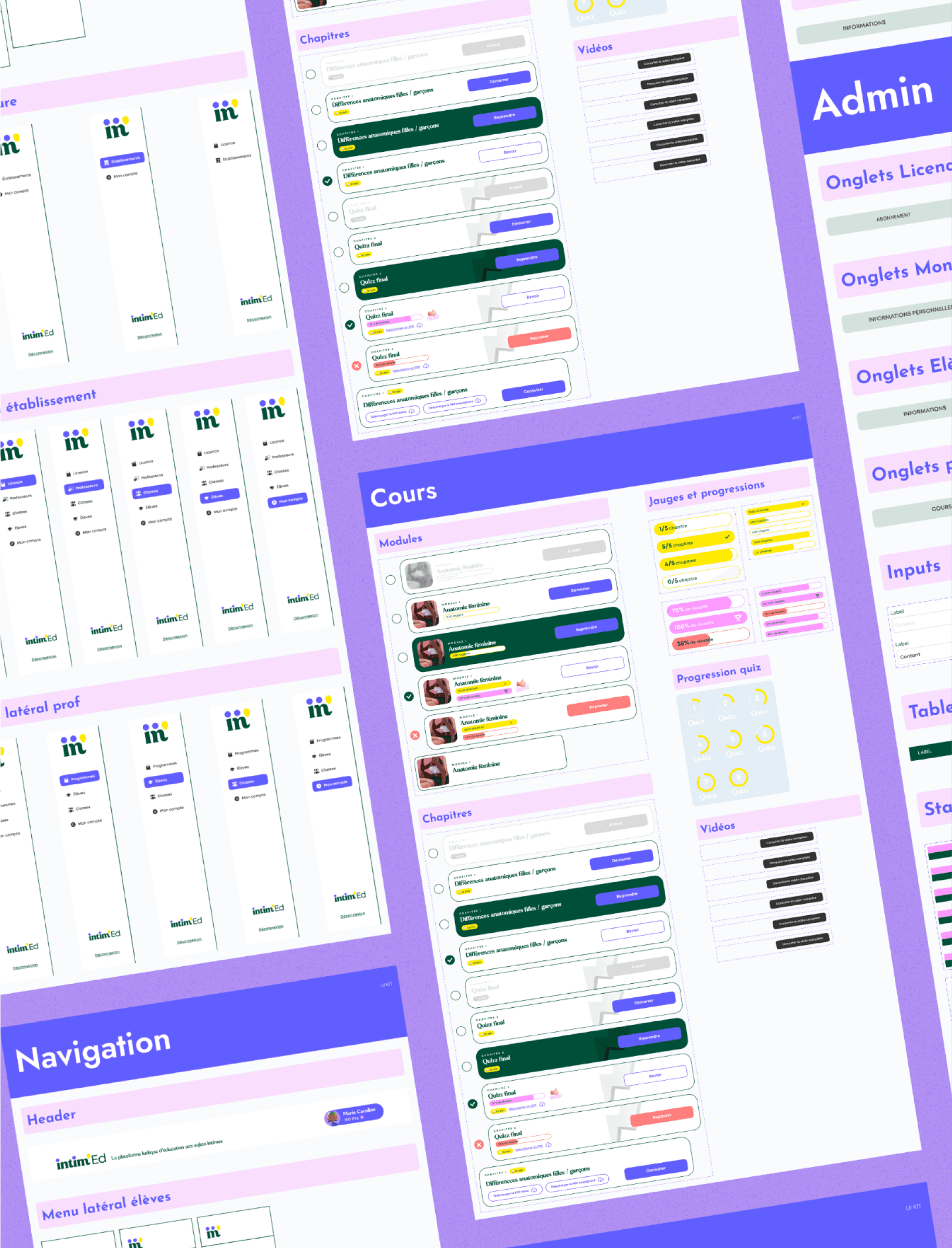 In collaboration with the Intimed teams, we created a business tool for the various administrators who have access to the platform, but also a part of the tool dedicated to courses and quizzes for students.