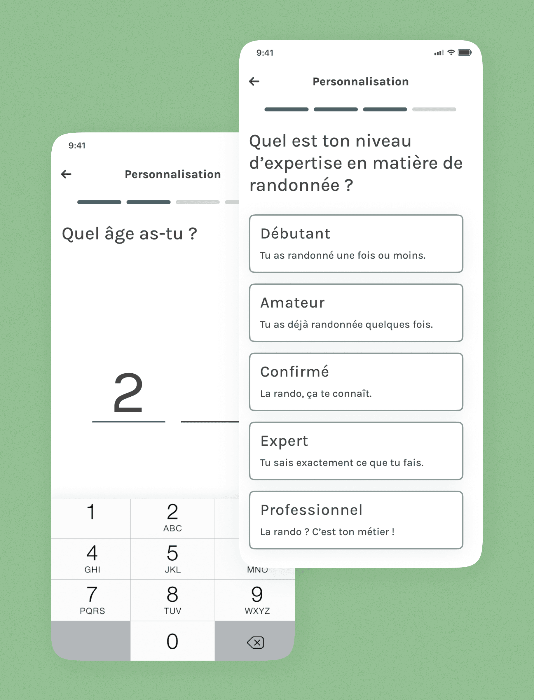 Users complete their profile by entering their age, experience in the field and general level of sporting ability.