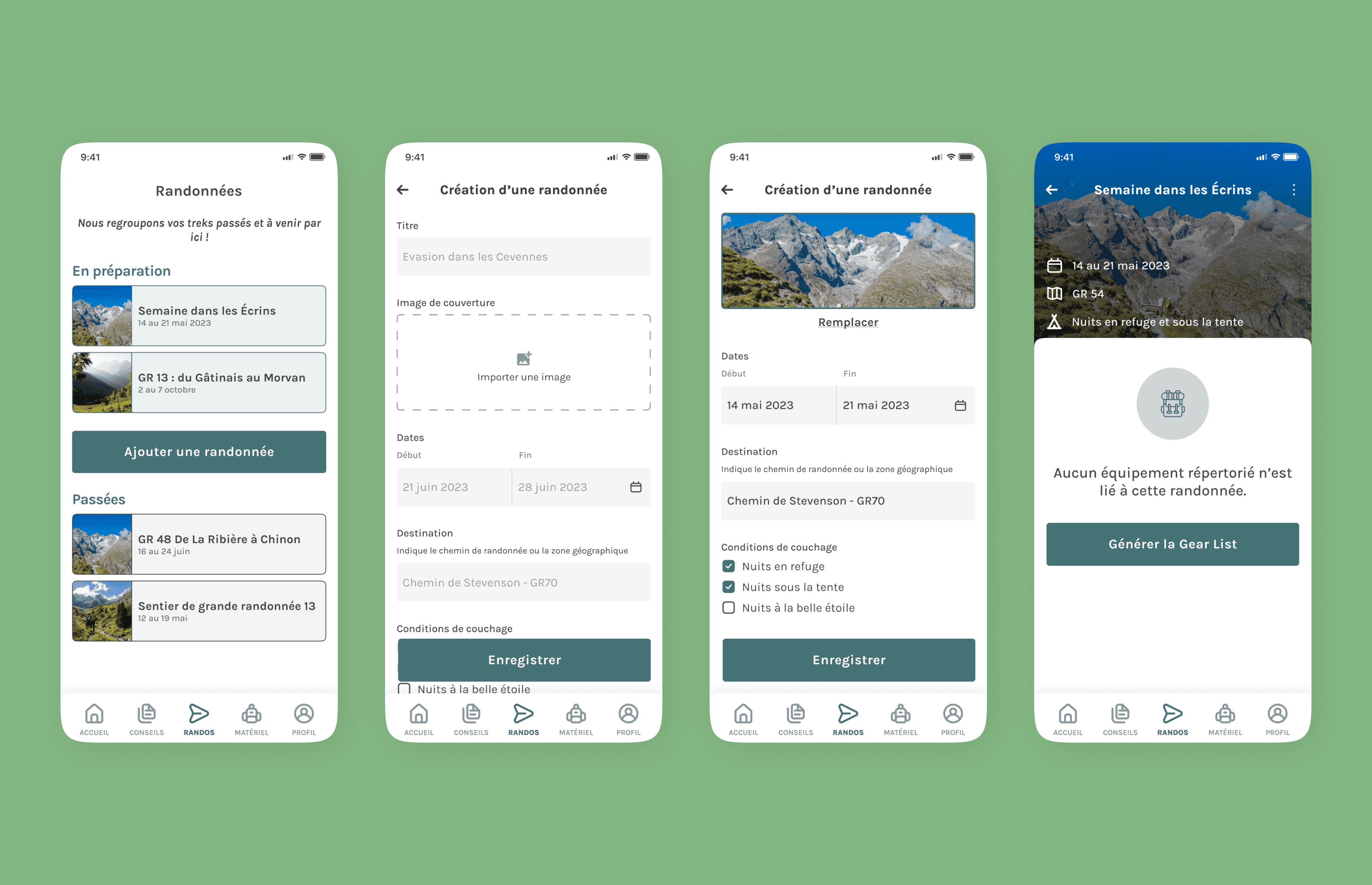 During my last year of study I worked on Trekeeper, a mobile design to helps novice hikers to optimize their practice with personalized advice and tools for organizing their equipment.